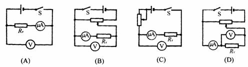 如下图所示4个电路图中应选哪一个来做实验?请填它们的字母代号: