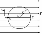 17.如图所示,一绝缘细圆环半径为r,其环面固定在水平面上,场强为E的匀强电场与圆环平面平行,环上穿有一电量为+q、质量为m的小球,可沿圆环做无摩擦的圆周运动.若小球经A点时速度vA的方向恰与电场垂直,且圆环与小球间沿水平方向无力的作用.当小球运动到与A点对称的B点时,小球对圆环在水平方向的作用力NB=_______.