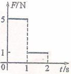 (5分)在水平面上静止放有一质量为1 kg的物体,物体与水平面间的滑动摩擦因数为0.4。今有一水平方向的作用力F作用于物体,使物体在水平面上滑动,力F随时间变化的图像如图所示。则前2s内力F所做的功为
