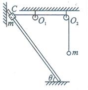 18. 如图所示,一轻绳跨过两个轻质光滑的小定滑轮01、O2,一端与一小球连接,另一端与套在足够长的光滑固定直杆上的小物块连接,小球与小物块的质量均为m,直杆与两定滑轮在同一竖直平面内,与水平面的夹角为