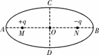 13.如图所示,虚线AB和CD分别为椭圆的长轴和短轴,相交于O点,两个等量异种点电荷分别处于椭圆的两个焦点M.N上,下列说法中正确的是 ( )
