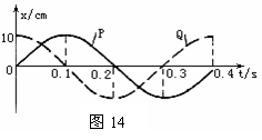 21.(8分)在一列横波的传播方向上有两点P和Q,两点间距离30m,它们的振动图象如图14所示.问: