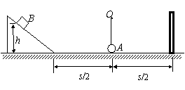 22.(14分)一轻质细绳一端系一质量为m=0.05kg的小球A,另一端挂在光滑水平轴O上,O到小球的距离为L=0.1m,小球跟水平面接触,但无相互作用,在球的两侧等距离处分别固定一个光滑的斜面和一个挡板,如图所示,水平距离s=2m,动摩擦因数为μ=0.25.现有一滑块B,质量也为m,从斜面上滑下,与小球发生弹性正碰,与挡板碰撞时不损失机械能.若不计空气阻力,并将滑块和小球都视为质点,g取10m/s2,试问: