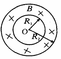 ,外半径为R2=1. 0 m,区域内有垂直纸面向里的匀强磁场,已知磁感应强度B=1.0
