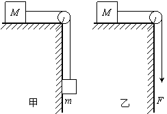 9.如图所示,甲图为光滑水平面上质量为M的物体,用细线通过定滑轮与质量为m的物体相连,由静止释放,乙图为同一物体M在光滑水平面上用细线通过定滑轮竖直向下受到拉力F的作用,拉力F的大小与m的重力相等,由静止释放,开始时M距桌边的距离相等,则