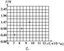 (1)根据实验数据在图乙的坐标纸上已描出了前四次测量的弹簧所受弹力大小F跟弹簧总长x之间的函数关系点,请把第5、6次测量的数据对应的点描出来,并作出F-x图线.