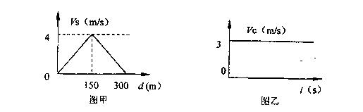 随离一侧河岸距离变化的关系如下图(甲)所示,磐在静水中的速度VC与时间的关系如下图(乙)所示,则 ( )