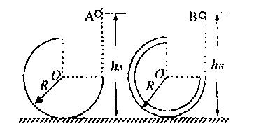 9.如图所示,两个3/4圆弧轨道固定在水平地面上,半径R相同,A轨道由金属凹槽制成,B轨道由金属圆管制成,均可视为光滑轨道。在两轨道右侧的正上方分别将金属小于A和B由静止释放,小球距离地面的高度分别用