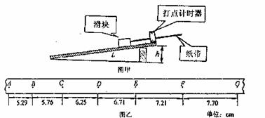 (1)已知打点计时器使用的交流电频率为50Hz,选A、B、C……等7个点为计数点,且各计数点间均有一个没有画出,如图乙所示。滑块下滑的加速度a= m/s2。