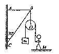 13.(10分)如图所示,轻杆BC的C点用光滑铰链与墙壁固定,杆的B点通过水平细绳AB使杆与竖直墙壁保持30°的夹角,若在B点悬挂一个质量不计的定滑轮,某人用它匀速地提起重物。已知重物的质量m=30kg,人的质量M=50kg,g=10m/s2。