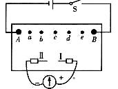 在《电场中等势线的描述》实验中,图中a、b、c、d、e为间距相等的五个基准点,A、B为电极,当电流从正接线柱流人G表时,其指针向正接线柱一侧偏转,当G表的指针指 时,说明探针所接触的两点正是等势点;当探针I接d点,探针Ⅱ接在某点时,G表指针偏向负接线柱一侧,为了找到等势点,探针Ⅱ向