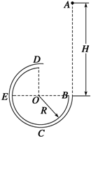9.如图9所示,四分之三周长的细圆管的半径R=0.4 m,管口B和圆心O在同一水平面上,D是圆管的最高点,其中半圆周BE段存在摩擦,BC和CE段动摩擦因数相同,ED段光滑;质量m=0.5 kg、直径稍小于圆管内径的小球从距B正上方高H=2.5 m的A处自由下落,从B处进入圆管继续运动直到圆管的最高点D飞出,恰能再次进入圆管。重力加速度g=10 m/s2。求: