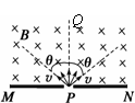 7.如图所示,MN是一荧光屏,当带电粒子打到荧光屏上时,荧光屏能够发光。MN的上方有磁感应强度为B的匀强磁场,磁场方向垂直纸面向里。P为屏上的一小孔,PQ与MN垂直。一群质量为m、带电荷量q的粒子(不计重力),以相同的速率v,从P处沿垂直于磁场方向射入磁场区域,且分布在与PQ夹角为θ的范围内,不计粒子间的相互作用。则以下说法正确的是( )