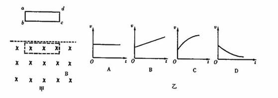 边刚进入磁场区的这段时间内,线框运动的速度图象不可能是图乙中的 ( )