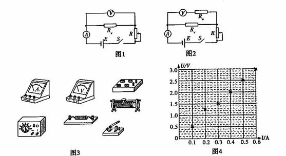 ②接通开关,逐次调节滑动变阻器.读取电流表示数I和对应的电压表示数U,并作记录。如图4所示,图中已标注出了几个与测量对应的坐标点,请你在图4上把描绘出的坐标点连成U一I图线。