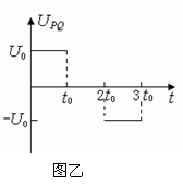 18.如图甲所示,建立Oxy坐标系,两平行极板P、Q垂直于y轴且关于x轴对称,极板长度和板间距均为l,第一四象限有磁场,方向垂直于Oxy平面向里。位于极板左侧的粒子源沿x轴向右连接发射质量为m、电量为+q、速度相同、重力不计的带电粒子。在0~3t0时间内两板间加上如图乙所示的电压(不考虑极板边缘的影响)。已知t = 0时刻进入两板间的带电粒子恰好在t0时刻经极板边缘射入磁场。上述m、q、l、t0、B为已知量。(不考虑粒子间相互影响及返回板间的情况)求: