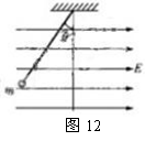 21、(8分)如图12所示,一质量为m的带电小球,用长为L的绝缘细线悬挂在水平向右,场强为E的匀强电场中,静止时悬线与竖直方向成θ=37º角. sin37º=0.6,cos37º=