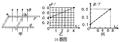 16.(17分)如图甲,在水平桌面上固定着两根相距20 cm、相互平行的无电阻轨道P和k*s*5*uQ,