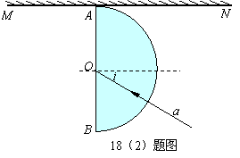 ,直径AB与屏幕垂直并接触于A点.激光a以入射角i =30°射向半圆玻璃砖的圆心O,结果在水平屏幕MN上出现两个光斑.求两个光斑之间的距离L.