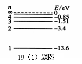 (1)(5分)已知金属钙的逸出功为2.7 eV,氢原子的能级图如图所示,一群氢原子处于量子数n=4能级状态,则