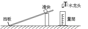 (1)实验时,让滑块从不同高度由静止沿斜面下滑,并同时打开水龙头的阀门,使水流到量筒中;当滑块碰到挡板的同时关闭阀门(整个过程中水流可视为均匀稳定的)。该实验探究方案是利用量筒中收集的水量来测量 的。