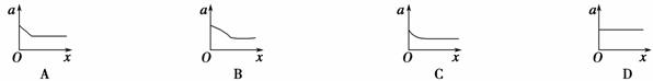 如图所示,水平面绝缘且光滑,弹簧左端固定,右端连一轻质绝缘挡板,空间存在着水平方向的匀强电场,一带电小球在电场力和挡板压力作用下静止.若突然将电场反向,则小球加速度的大小随位移x变化的关系图象可能是下图中的( A )