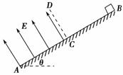 (12分)如图所示,倾角为θ的斜面AB是粗糙且绝缘的,AB长为L,C为AB的中点,在A.C之间加一方向垂直斜面向上的匀强电场,与斜面垂直的虚线CD为电场的边界.现有一质量为m、电荷量为q的带正电的小物块(可视为质点),从B点开始在B、C间以速度v0沿斜面向下做匀速运动,经过C后沿斜面做匀加速运动,到达斜面底端A时的速度大小为v.试求: