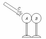 如图所示,A、B是两个带有绝缘支架的金属球,它们原来均不带电,并彼此接触。现使