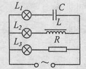 如图所示,当交流电源的电压为220 V,频率为50 Hz时,三只灯泡,L1、L2、L3亮度相同。若保持交流电源的电压不变,只将其频率变为100 Hz,则 ( )
