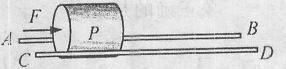 上,一个圆柱形工件P架在两木棍之间。工件在水平向右的推力F的作用下,恰好能向右匀速运动。若保持两木棍在同一水平面内,但将它们间的距离稍微增大一些后固定。仍将圆柱形工件P架在两木棍之间,用同样的水平推力F向右推该工件,则下列说法中正确的是 ( )