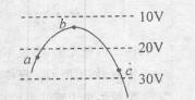 迹,对于轨迹上的a、b、c三点,下列说法中正确的是 ( )