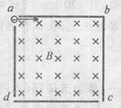 如图所示,截面为正方形空腔abcd中有一匀强磁场,磁场方向垂直纸面向里。若有一束具有不同速率的电子由小孔a沿ab方向射入磁场,打在腔壁上的电子都被腔壁吸收,则由小孔c和小孔d射出的电子的速率之比为