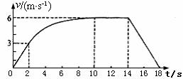 下图是一个遥控电动小车在水平直轨道上运动的v-t图像,图中2s~10s时间段的图像为曲线,其余时间段均为直线。已知小车运动过程中所受阻力不变,在2s~14s时间段内小车的功率保持不变,在14s末停止供电而让小车自由滑行,小车的质量为1.0kg。求: