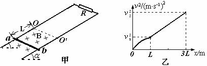 (1)若ab杆在平行于斜面的恒力作用下由静止开始沿斜面向上运动,其速度平方一位移关系图像如乙图所示,图中v1和v2为已知。则在发生3L位移的过程中,电阻R上产生的电热Q1是多少?