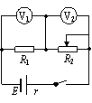 14、如图所示,闭合电键,当R2的滑片向右移动时,电压表V1和电压表V2示数变化情况是[ ]