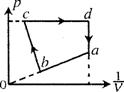 d,图中坐标轴上的符号p指气体压强,V指气体体积,ab线段延长线过坐标原点,cd线段与p轴垂直,da线段与1/V轴垂直。气体在此状态变化过程中…………( )