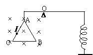 如图所示,质量为m、总长度为L的等边三角形ABC导线框,在A处用细线竖直悬挂于轻杆一端,水平轻杆另一端通过弹簧连接地面,离杆左端1/3处有一固定转轴O.现垂直于ABC施加一个水平方向广阔的匀强磁场,磁感强度为B,当在三角形ABC导线框中通以逆时针方向大小为I的电流时,AB边受到的安培力大小是