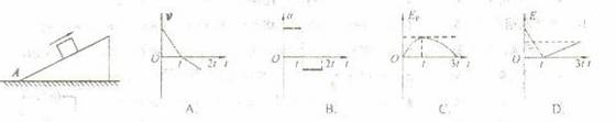 5.如图所示,一质量为m的滑块以初速度v0自固定于地面的斜面底端A开始冲上斜面,到达某一高度后返回A,斜面与滑块之间有摩擦,下图分别表示滑块在斜面上运动的整个过程中速度v、加速度a、势能Ep和机械能E随时间的变化图线,可能正确的是( )