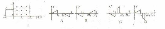 7.如图所示,在2L≥x≥0的区域内存在着匀强磁场,磁场的方向垂直于xOy平面(纸面)向里,具有一定电阻的矩形线框abcd位于xOy平面内,线框的ab边与y轴重合,bc边长为L,令线框从t-0的时刻起由静止开始沿x轴正方向做匀加速运动,则线框中的感应电流I(取逆时针方向的电流为正)随时间t的函数图象可能是 ( )