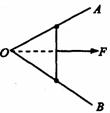 如图所示,AOB为水平放置的光滑杆,夹角AOB=60℃,杆上套有两个质量不计的小环,两环间连有可伸缩的弹性绳。今在绳的中点施以沿∠AOB的角平分线且水平向右的力F,缓慢地拉绳,待两环达到稳定状态时,绳对环的拉力为