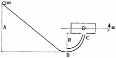,管道出口为C.圆弧半径R=15 cm,AB的竖直高度差h=35 cm.在紧靠出口C处,有一水平放置且绕其水平轴线匀速旋转的圆筒(不计筒皮厚度),筒上开有小孔D,筒旋转时,小孔D恰好能经过出口C处.若小球射出C口时,恰好能接着穿过D孔,并且还能再从D孔向上穿出圆筒,小球返回后又先后两次向下穿过D孔而未发生碰撞.不计摩擦和空气阻力,取g=10 m/s2,问: