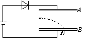 如图所示,平行板电容器AB两极板水平放置,A在上方,B在下方,现将其和二极管串联接在电源上,已知A和电源正极相连,二极管具有单向导电性,一带电小球沿AB 中心水平射入,打在B极板上的N点,小球的重力不能忽略,现通过上下移动A板来改变两极板AB间距(两极板仍平行),则下列说法正确的是