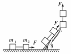如图所示,质量为m1和m2的两个物体用细线相连,在大小恒定的拉力F作用下,先沿水平面,再沿斜面(斜面与水平面成θ角),最后竖直向上运动.则在这三个阶段的运动中,细线上张力的大小情况是