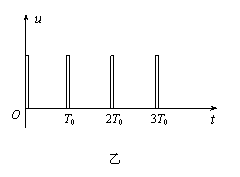 ⑵系统振动过程中,在电脑上所形成的脉冲电压波形如图乙所示,由图可知该系统的振动周期大小为:T= ;