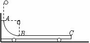 (10分)如图所示,水平光滑地面上停放着一辆小车,左侧靠在竖直墙壁上,小车的四分之一圆弧轨道AB是光滑的,在最低点B与水平轨道BC相切,BC的长度是圆弧半径的10倍,整个轨道处于同一竖直平面内。可视为质点的物块从A点正上方某处无初速下落,恰好落入小车圆弧轨道滑动,然后沿水平轨道滑行至轨道末端C处恰好没有滑出。已知物块到达圆弧轨道最低点B时对轨道的压力是物块重力的9倍,小车的质量是物块的3倍,不考虑空气阻力和物块落入圆弧轨道时的能量损失。求: