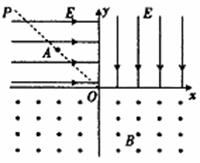 ,一带正电的粒子从OP直线上某点A(-L,L)处由静止释放,重力不计,设粒子质量为m,带电量为q,E、B、m、q均未知,但已知各量都使用国际制单位时,从数值上有![]()
