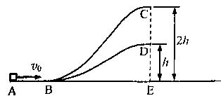 11.(10分)如图,ABC和ABD为两个光滑固定轨道,A、B、E在同一水平面,C、D、E在同一竖直线上,D点距水平面的高度h,C点高度为2h,一滑块从A点以初速度