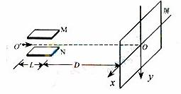14.(16分)质谱分析技术已广泛应用于各前沿科学领域。汤姆孙发现电子的质谱装置示意如图,M、N为两块水平放置的平行金属极板,板长为L,板右端到屏的距离为D,且D远大于L,O’O为垂直于屏的中心轴线,不计离子重力和离子在板间偏离O’O的距离。以屏中心O为原点建立xOy直角坐标系,其中x轴沿水平方向,y轴沿竖直方向。