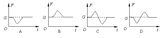 在探究超重和失重规律时,某体重为G的同学站在一压力传感器上完成一次下蹲动作。传感器和计算机相连,经计算机处理后得到压力F随时间t变化的图象,则下列图象中可能正确的是