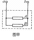 (8分) 有一个特殊结构的元件(如图甲所示),由A、B两部分组成,被封闭在透明的玻璃壳内,a、b为两个接线柱。某学生为了研究A、B两部分电学特性,通过查阅资料,得知A是一个定值电阻,其U-I值如 下表所示;B是一种由特殊金属丝制成的导体,该元件的额定电压是7伏,为了既不破坏元件的结构,但又能测定B的额定功率,他使用(如图乙所示)的器材,测得一组该元件的I-U值(如图丙所示)后,利用这些数据测出了B的额定功率。请你回答以下问题: